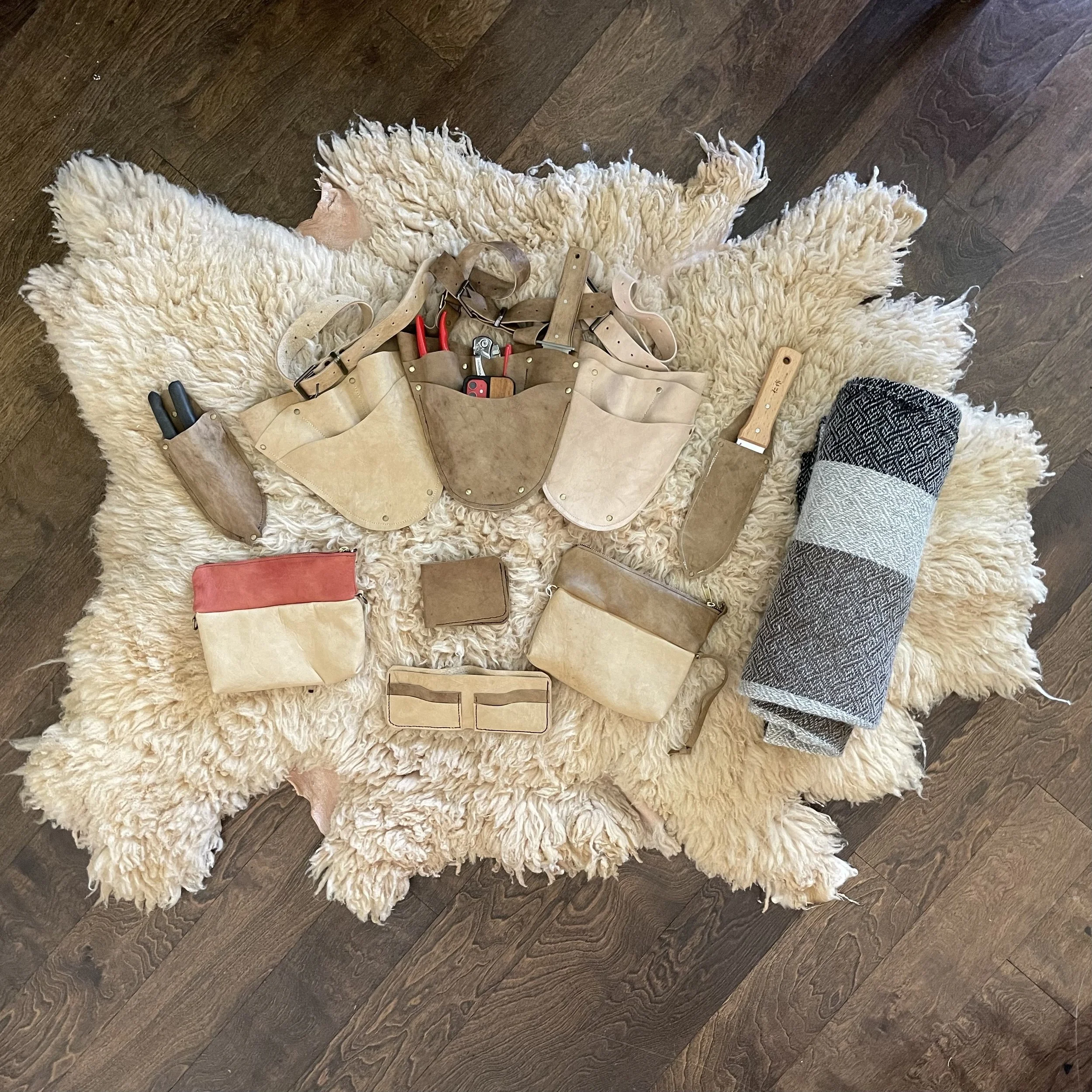 Check out our shop to view the current selection of hand-crafted leather products, veg tanned sheepskins, 100% grass fed lamb tallow products, yarn and other products from our flock and tannery.